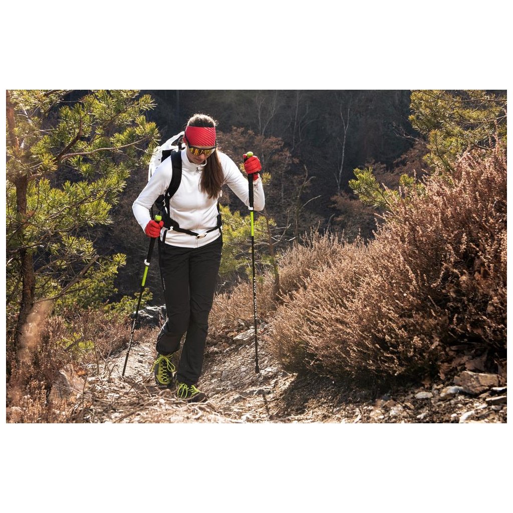 Soracte sú dámske vetruodolné, ale priedušné nohavice kombinujúce materiály Woven stretch, Powertherm a membránu Quatroflex Power s parametrami 10 000 mm vodný stĺpec, 10 000 g/m²/24 hod priedušnosť. Vďaka kombinácii týchto materiálov sú nohavice v zadnej časti dokonale priedušné, zatiaľ čo spredu neprefúknu. Skialpinisti pri náročných stúpaniach rozhodne ocenia rozopínacie vetranie v hornej časti nohavíc, anatomicky tvarovaný strih a extrémne pružný materiál v kolenách, ktorý umožňuje dokonalú voľnosť pohybu. Vnútorná strana nohavíc je vystužená, aby nedošlo k oderu o skialpové topánky. Nohavice majú rozopínacie nohavice na lýtku, vďaka čomu je možné upravovať ich šírku a pretiahnuť ich cez skialpové topánky. V páse je guma so silikónovým pásikom, pri aktívnom pohybe tak nohavice zostanú na svojom mieste. Nohavice majú pútka na traky, ktoré si u nás môžete zvlášť dokúpiť, a nechýba ani niekoľko bezpečnostných reflexných prvkov. Nohavice Soracte sú vhodné pre skialpinistov, bežkárov aj na ostatné outdoorové aktivity. Materiálové zloženie: HLAVNÝ MATERIÁL: 88% POLYAMID, 12% ELASTAN, KONTRASTNÝ MATERIÁL: 76% POLYAMID, 24% ELASTAN