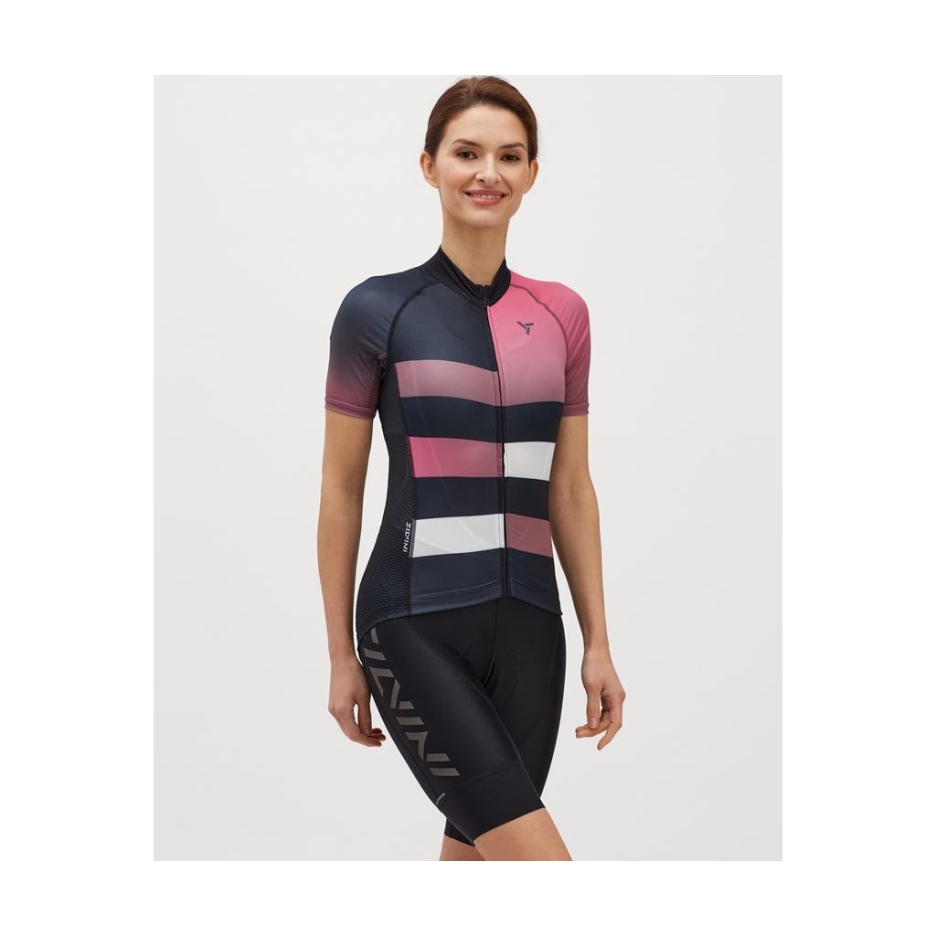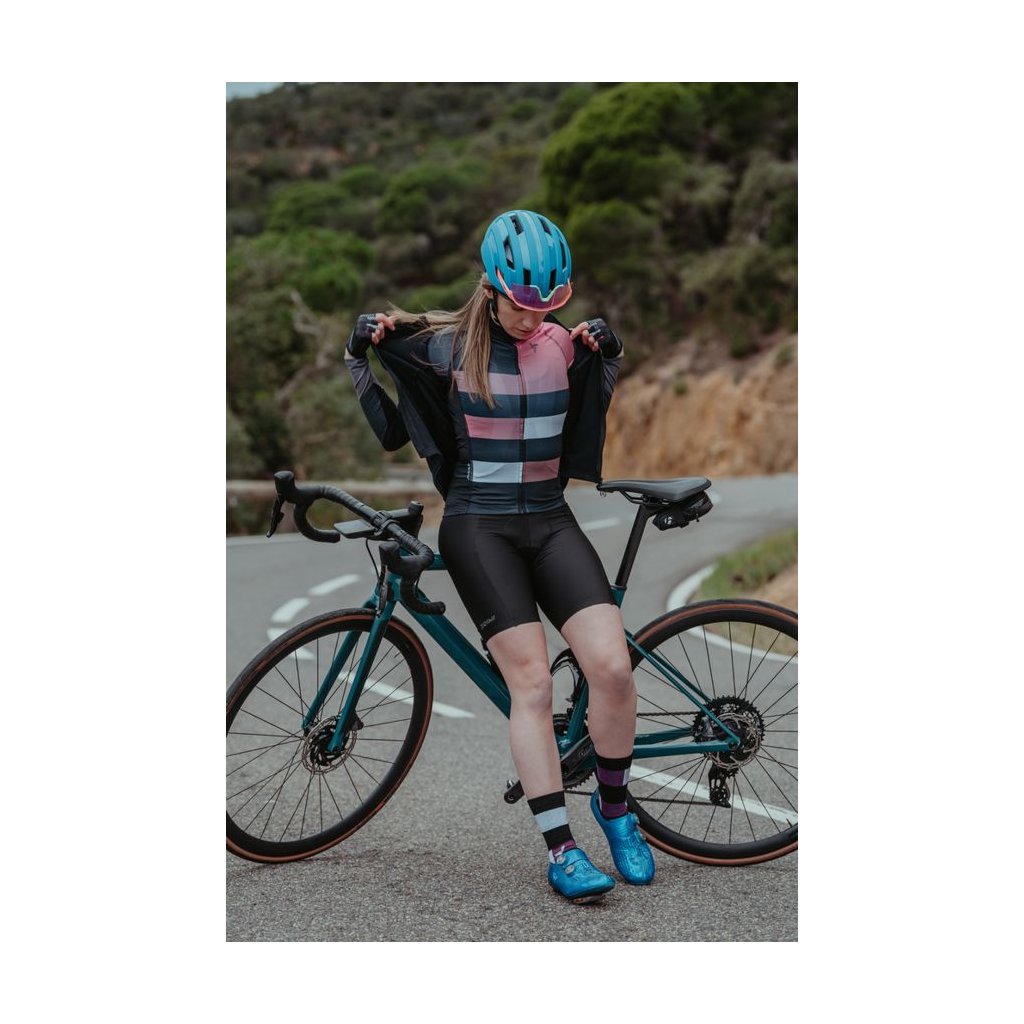 Mazzana je dámsky cyklistický dres z našej kolekcie Choice. Táto kolekcia sa vyznačuje jednoduchým dizajnom a konzervatívnymi farebnými kombináciami, ktoré spájajú klasiku s modernou. Dres má našité reflexné prvky na zvýšenie vášho bezpečia. Je vyrobený z veľmi ľahkého a priedušného materiálu, ktorý výborne odvádza vlhkosť a schne. Vďaka tomu sa budete pri jazde cítiť vždy veľmi pohodlne. Na chrbte má tri vrecká, z toho prostredné je so zipsom. Zakončený je elastickou gumou, ktorá dres skvele drží na svojom mieste.