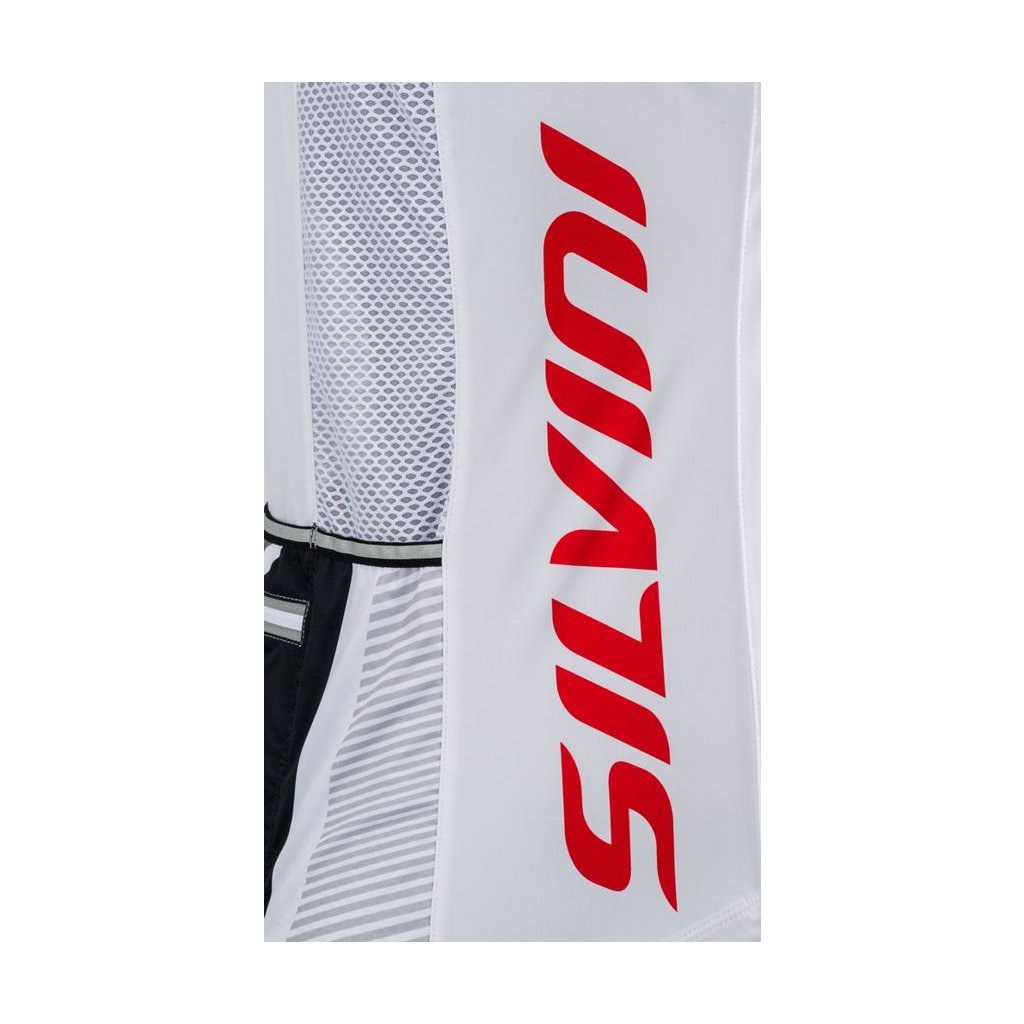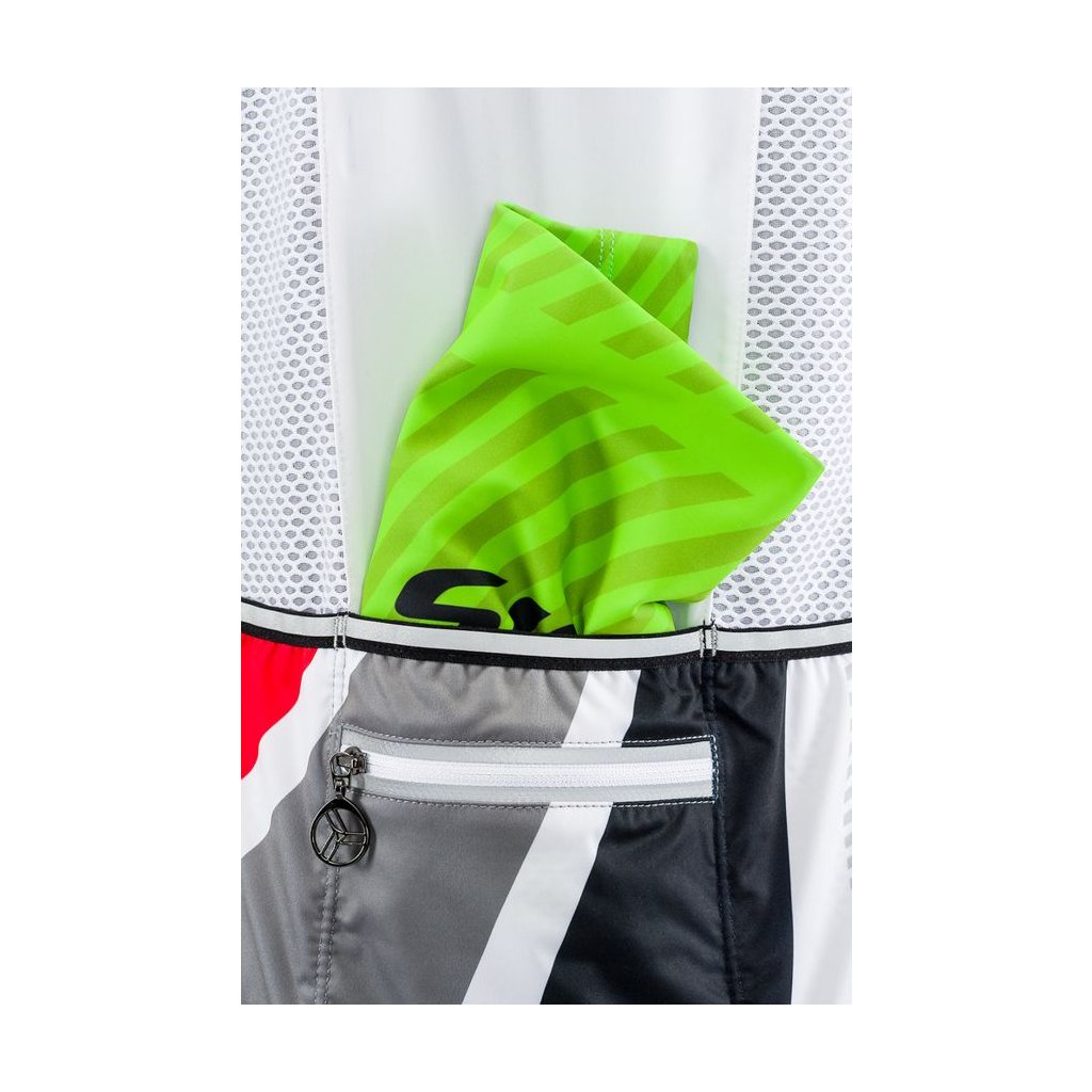 Dámska cyklistická úzko strihaná vesta (SLIM FIT) je vyrobená z pružného tenkého softshellu. Priedušnou w-proof membránou odolá vetru i dažďu. Vesta má dlhý hlavný zips, takže sa dobre oblieka a v prípade horúčavy sa dá ľahko rozopnúť aj za jazdy. Na predĺžených chrbte sú dva panely z úplne priedušného tenkého materiálu kvôli lepšej ventiláciu. Vesta má štyri vrecká na drobné aj väčšie veci. Na chrbte je klasická trojitá vrecko na objemnejšie doplnky. Na prostrednej vrecku je našitá ešte jedna menšia priehradka na zips, kam môžete uložiť veci, ktoré naozaj nechcete stratiť. Vrecká sú pri jazde na bicykli výborne dostupné. Samozrejmosťou na našich vestách sú reflexné prvky, ktoré zvyšujú bezpečnosť pri horšej viditeľnosti. V spodnej časti je protišmykový silikónový pásik, aby vesta správne sedela a nebolo nutné ju počas jazdy stále upravovať a posúvať. Potlač sa pomocou sublimácie tlačí do štruktúry materiálu a je teda mechanicky aj chemicky odolný. Vesta je vhodná do chladnejšieho počasia skôr pod 15 ° C.