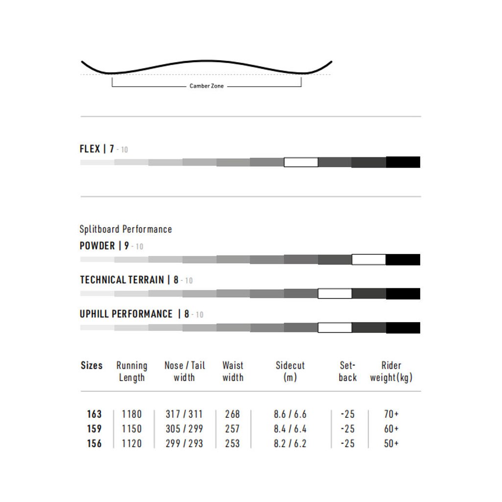 Oblíbenec mezi freeride prkny a splity Squash je nově přetvarován, aby byla tvá jízda v prachu plynulejší a přechod z hrany na hranu jednodušší. Vymakanější špička je delší, takže se ti fakt nepotopí, ani když dáš omylem plnou váhu na přední nohu a s přizvedlejší vlaštovčí patkou se zase nemusíš bát jet v nebezpečných pasážích na switch. Squash prostě válí v prachu i kárvu. Navržen tak, aby sis na něm užil “pow days” a to bez potřeby kupovat si permici. Zkonstruován pro bezchybný výkon ve všech možných podmínkách a terénech. Díky Progressive vykrojení a Trüe Camber prohnutí se můžeš těšit na nekompromisní ovladatelnost, takže budeš oblouky sekat jako profík. Zatímco tvar Tapered Swallowtail ti nabídne opravdu královskou jízdu prašanem. Directional Splitboard ti dovolí dělat oblouky, při kterých se nenadřeš a budeš je projíždět s maximálním stylem. Rychlá skluznice Sintered Speed Formula HD ti zase pomůže překonat zrádné rovinky. Díky předvrtaným otvorům na špičce a patě bude aplikace pásů rychlejší než kdy jindy, a to zvláště s našimi Nitro x Kohla Squash stoupacími skiny, které ti umožní bleskový a precizní přechod z módu túry na jízdu. Pokud hledáš split, který tě po výšlapu nahoru pořádně sveze dolů, už nehledej dál a upři svůj zrak na Squash Split! * TVAR: DIRECTIONAL SWALLOWTAIL SPLITBOARD * CAMBER: TRÜE * ŠÍŘKA: MID-WIDE/WIDE * PRUŽNOST: ALL TERRAIN, 7/10 * VYKROJENÍ: PROGRESSIVE * JÁDRO POWERLITE CORE, BI-LITE LAMINÁT, SKLUZNICE SINTERED SPEED FORMULA HD, ROZESTAVĚNÍ INSERTŮ VOILE, ZÁMKY NA PATCE I ŠPIČCE, KOVANÉ SPOJOVACÍ HÁČKY Z HLINÍKU T7075.