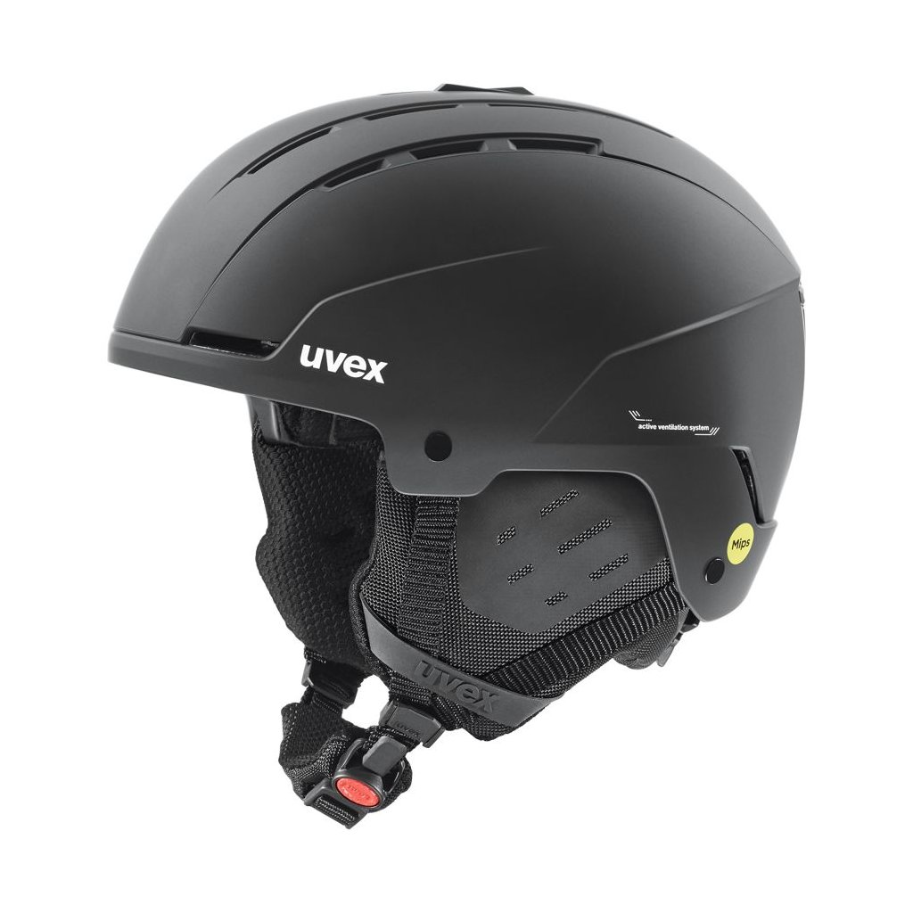 Lyžiarska helma Uvex Stance s technológiou MIPS® poskytuje zvýšenú ochranu v prípade nárazov pod uhlom. Táto technológia výrazne znižuje množstvo rotačných síl, ktoré by sa inak preniesli až na mozog. helma s konštrukciou škrupiny Hardshell, ktorá sa skladá z ľahkého jadra absorbujúceho nárazy a z ultra tenkej, ale pevnej vonkajšej škrupiny. Vďaka Fast Adapting System (FAS) je možné popruhy ľahko a plynule upraviť presne na mieru podľa tvaru Vašej tváre. Helma tak zostane bezpečne na Vašej hlave vo všetkých situáciách a popruhy budú v pohodlnej pozícii. Helma je vybavená komfortným systémom Monomatic - upevnenie na brade pomocou jednej ruky. Bezpečné uchytenie na hlave je zaistené vďaka systému upínania IAS pre nastavenie vnútorného obvodu helmy, tá potom padne úplne dokonale. Integrované ventilačné kanály garantujú optimálny priechod čerstvého vzduchu. Je možné ich uzavrieť, a zabrániť tak prúdeniu vzduchu helmou - nedochádza tak k tzv. prievanovému efektu.